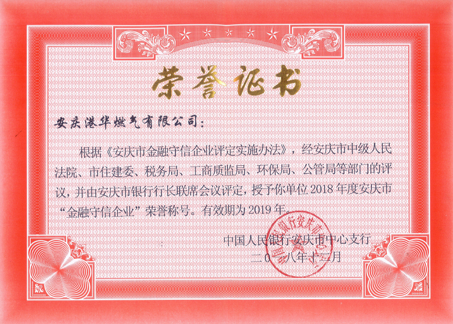 安慶港華再次榮獲“金融守信企業(yè)”稱號(hào) 發(fā)布時(shí)間:2019-06-20    閱讀次數(shù):8089次