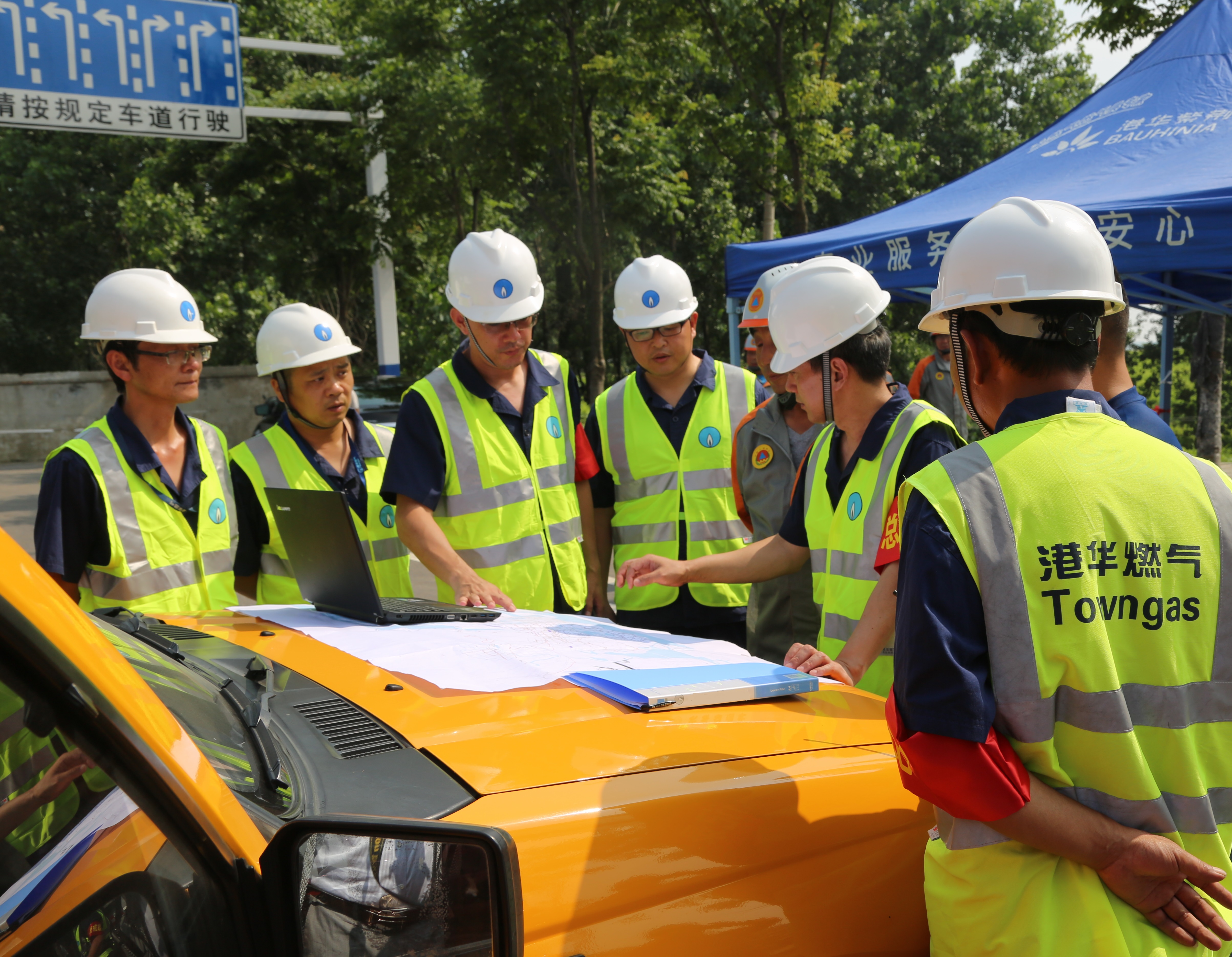 15時(shí)演習(xí)正式開始,接到報(bào)警后,消防、交警、港華及人防搶險(xiǎn)人員于10分鐘內(nèi)先后趕至現(xiàn)場(chǎng),消防人員立即對(duì)泄漏區(qū)域進(jìn)行滅火及水霧稀釋。交警人員對(duì)泄漏區(qū)域路段進(jìn)行交通封閉。市人防協(xié)同消防、交警、港華燃?xì)鈱I(yè)搶險(xiǎn)隊(duì)設(shè)立現(xiàn)場(chǎng)聯(lián)合搶險(xiǎn)指揮部,迅速組織人員對(duì)現(xiàn)場(chǎng)進(jìn)行緊急疏散、警示警戒、交通導(dǎo)行、燃?xì)鉂舛葯z測(cè)等一系列應(yīng)急處置措施。在初步控制事發(fā)現(xiàn)場(chǎng)后,經(jīng)現(xiàn)場(chǎng)指揮部研判,決定關(guān)閉潛江路地下燃?xì)膺M(jìn)氣閥門并使用防爆風(fēng)機(jī)加速燃?xì)鉂舛鹊南♂?。?jīng)過有效處置,現(xiàn)場(chǎng)的燃?xì)庑孤┑玫娇刂?,周邊空氣中的燃?xì)鉂舛戎饾u將為0%PPM。15時(shí)35分,搶修人員進(jìn)入管道受損點(diǎn),對(duì)受損的PE200燃?xì)夤艿肋M(jìn)行修復(fù)。經(jīng)過24分鐘的緊張搶修作業(yè),成功完成管道修復(fù)。16時(shí),指揮部下令打開燃?xì)獾叵鹿芫W(wǎng)進(jìn)氣閥,恢復(fù)燃?xì)夤?yīng)。16時(shí)05分,經(jīng)檢測(cè)修復(fù)點(diǎn)無燃?xì)鈹?shù)值,安慶港華迅速組織客服及市務(wù)部相關(guān)人員進(jìn)行用戶端的恢復(fù)供氣。16時(shí)20分,演習(xí)圓滿結(jié)束,現(xiàn)場(chǎng)指揮部對(duì)演練進(jìn)行指導(dǎo)點(diǎn)評(píng),而后,參演人員快速恢復(fù)現(xiàn)場(chǎng)、有序撤離。