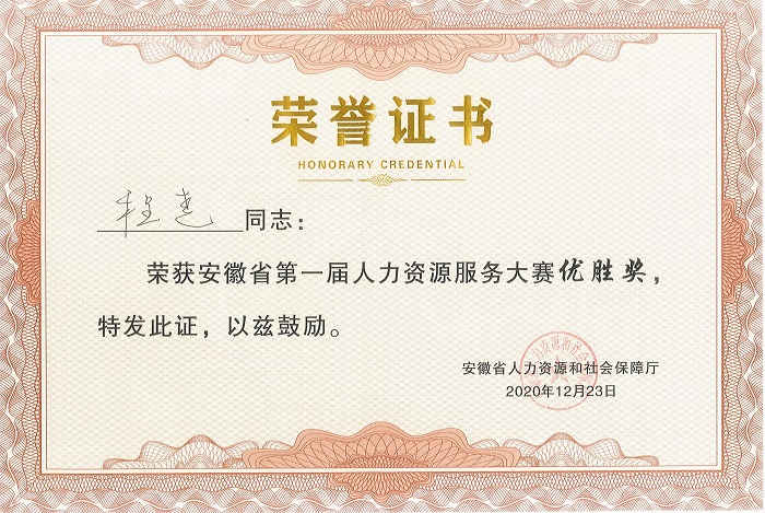 在近日成功舉辦的安徽省第一屆人力資源服務(wù)大賽上,安慶港華員工程堯成功從全省153名選手脫穎而出,奪得優(yōu)勝獎。