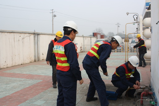 126下午15時(shí)50分,安慶港華燃?xì)饧t關(guān)CNG加氣站內(nèi)響起急促燃?xì)鈭?bào)警器聲。緊接著,加氣工迅速關(guān)閉加氣機(jī)應(yīng)急球閥停止加氣,禁止車輛移動(dòng),并大聲呼喊:“漏氣了,大家快撤到站外安全地帶。”1552分,站內(nèi)司乘人員在加氣工的指導(dǎo)下,全部撤到站外,并在站外拉起警戒線。1600,站內(nèi)搶修人員通過(guò)對(duì)泄漏現(xiàn)場(chǎng)的初步判斷泄漏來(lái)自2#壓縮機(jī)處,立即停止壓縮機(jī)工作。如此同時(shí),當(dāng)班班長(zhǎng)立即把現(xiàn)場(chǎng)情況向站長(zhǎng)報(bào)告。1610分,接到指令的站、部門(mén)負(fù)責(zé)人帶領(lǐng)部門(mén)應(yīng)急行動(dòng)小組趕到現(xiàn)場(chǎng)。經(jīng)過(guò)各行動(dòng)小組緊張、有序的處置,僅用20分鐘的時(shí)間就成功檢查并消除了泄漏——2#壓縮機(jī)法蘭處。1632,現(xiàn)場(chǎng)指揮發(fā)出:“解除警戒,演練結(jié)束”指令。
