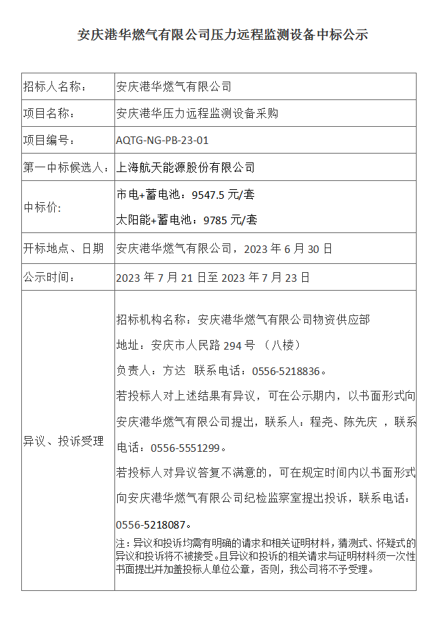安慶港華燃氣有限公司壓力遠程監(jiān)測設備中標公示 發(fā)布時間:2023-07-21    閱讀次數:4072次