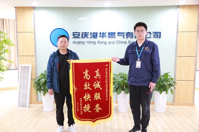 一流的服務(wù)塑造一流的營商環(huán)境,安慶港華在燃?xì)夤?yīng)服務(wù)工作中不斷提升為企服務(wù)的標(biāo)桿,持續(xù)助力營商環(huán)境創(chuàng)優(yōu)。近日,安慶榮祥和餐飲集團(tuán)的負(fù)責(zé)人將一面繡有“真誠服務(wù),高效快捷”的錦旗送至安慶港華,對公司工商客戶組的工作人員在廚房燃?xì)夤艿栏脑熘刑峁┑膬?yōu)質(zhì)服務(wù)表示感謝。