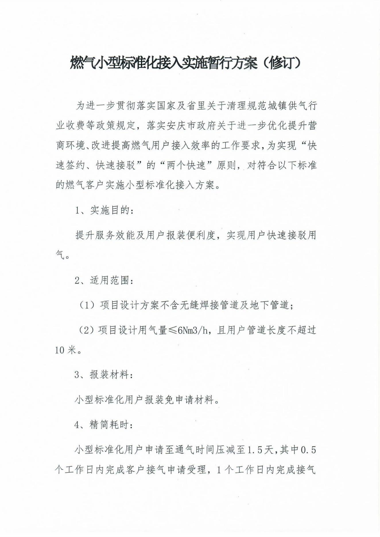 燃氣小型標準化接入實施暫行方案(修訂)
