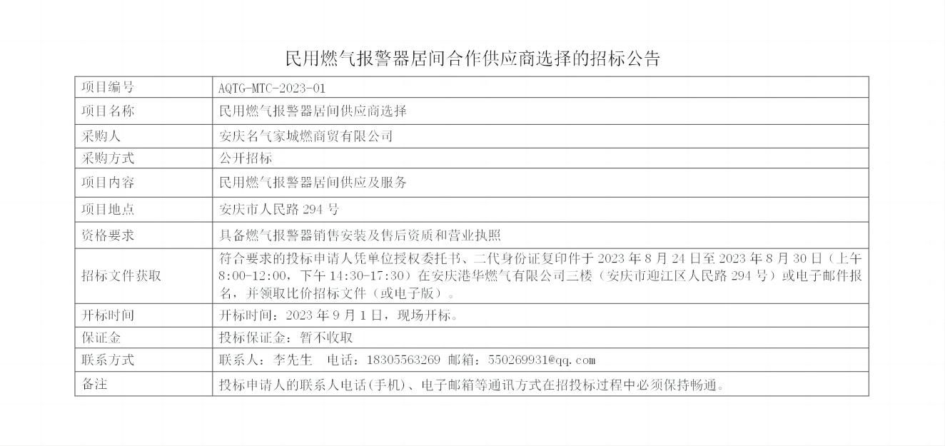 民用燃?xì)鈭缶骶娱g合作供應(yīng)商選擇的招標(biāo)公告