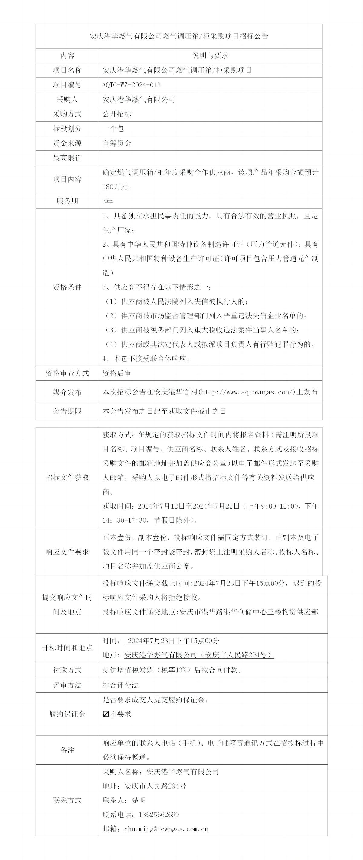安慶港華燃?xì)庥邢薰救細(xì)庹{(diào)壓箱/柜采購項目招標(biāo)公告