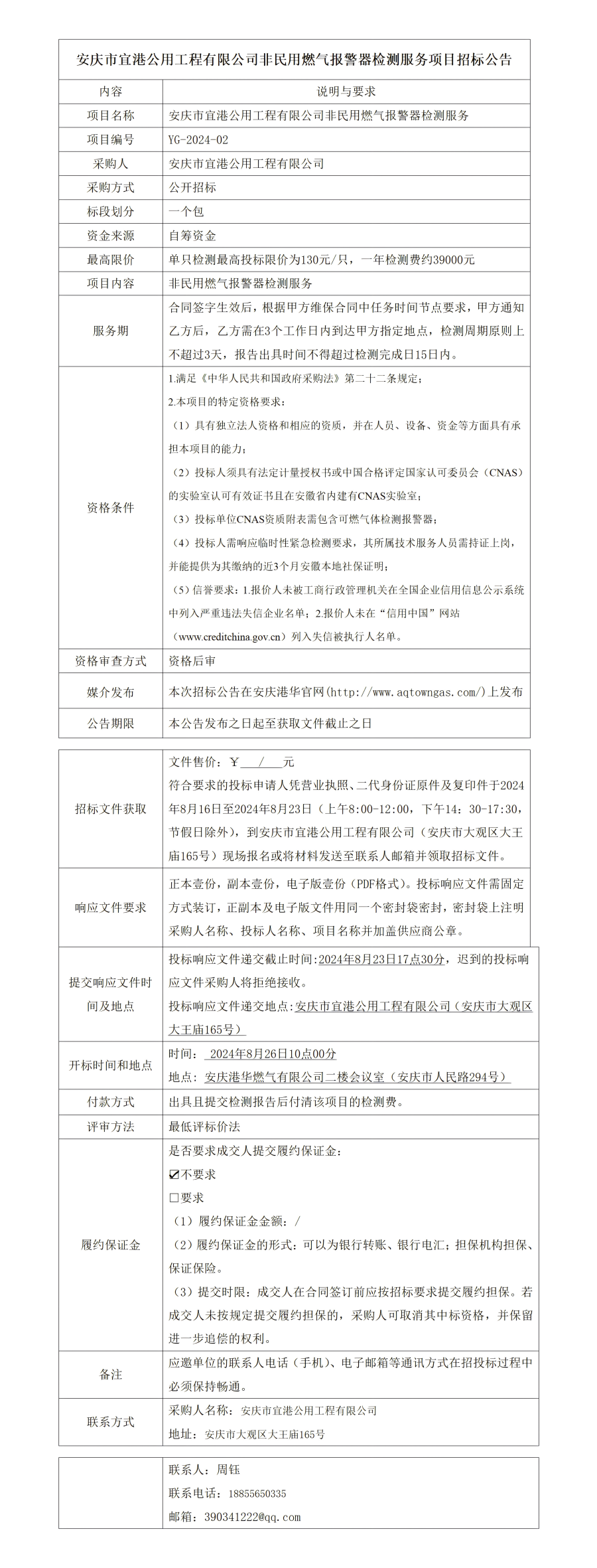 安慶市宜港公用工程有限公司非民用燃氣報警器檢測服務(wù)項目招標(biāo)公告