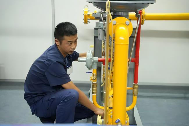 本次競(jìng)賽分為理論考試和實(shí)操競(jìng)賽兩大部分,內(nèi)容涵蓋技術(shù)方案編制、蒙眼拆裝、工藝系統(tǒng)檢查及故障排除等多項(xiàng)考核內(nèi)容。理論考試主要檢驗(yàn)參賽選手對(duì)燃?xì)夤艿勒{(diào)壓相關(guān)知識(shí)的掌握情況,而實(shí)操競(jìng)賽則通過(guò)模擬真實(shí)工作環(huán)境,全面考察選手的實(shí)際操作能力和應(yīng)對(duì)突發(fā)情況的能力。在實(shí)操競(jìng)賽中,選手們需要在規(guī)定時(shí)間內(nèi)完成蒙眼拆裝切斷閥、排查調(diào)壓器故障并恢復(fù)管道壓力等任務(wù),整個(gè)過(guò)程需準(zhǔn)確無(wú)誤的完成144個(gè)零件的拆裝,并一次性調(diào)試合格。比賽現(xiàn)場(chǎng)氣氛緊張而熱烈,選手們?nèi)褙炞?、?zhēng)分奪秒,展現(xiàn)了燃?xì)庑袠I(yè)職工良好的職業(yè)素養(yǎng)和團(tuán)隊(duì)協(xié)作精神。
