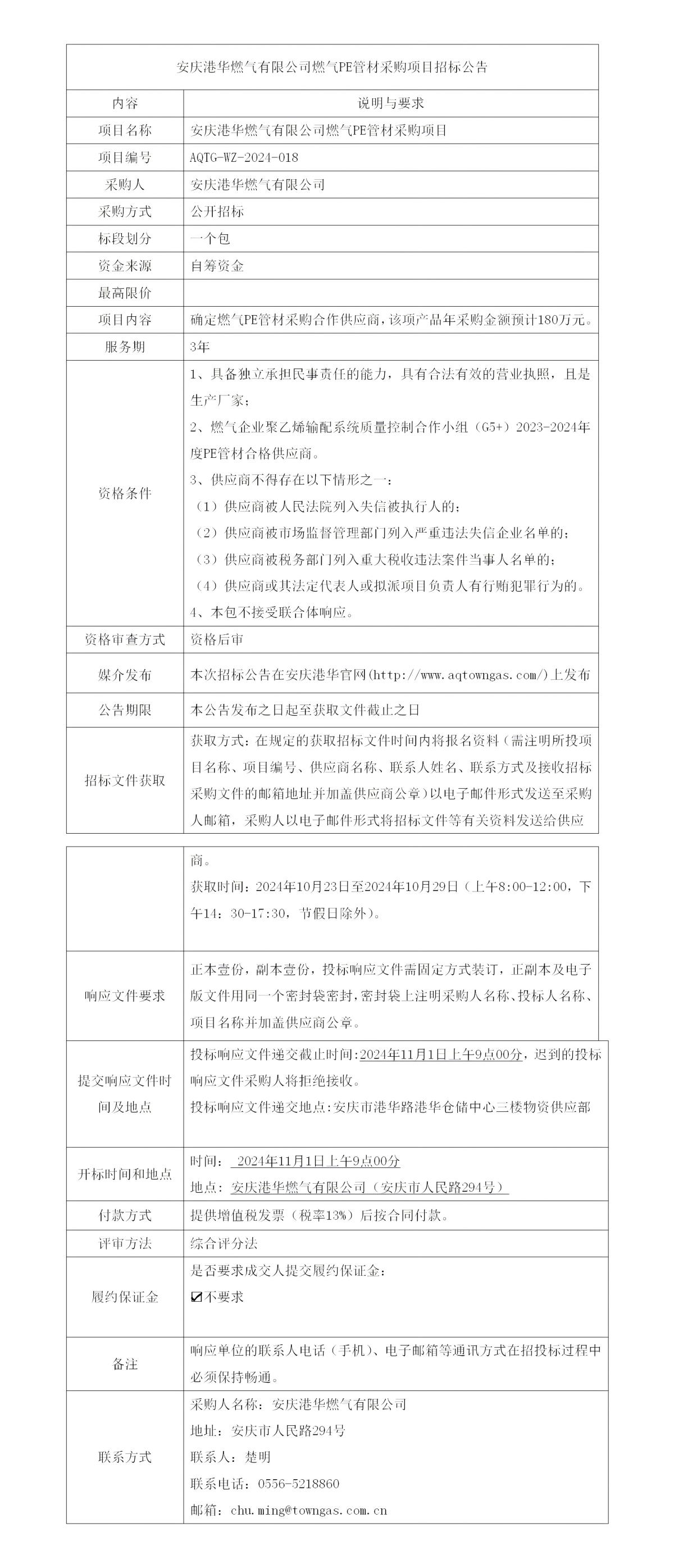 安慶港華燃?xì)庥邢薰救細(xì)釶E管材采購(gòu)項(xiàng)目招標(biāo)公告