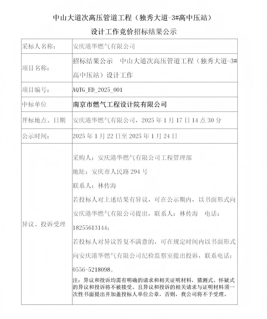 中山大道次高壓管道工程(獨(dú)秀大道-3#高中壓站)設(shè)計(jì)工作競(jìng)價(jià)招標(biāo)結(jié)果公示 發(fā)布時(shí)間:2025-01-21    閱讀次數(shù):2466次