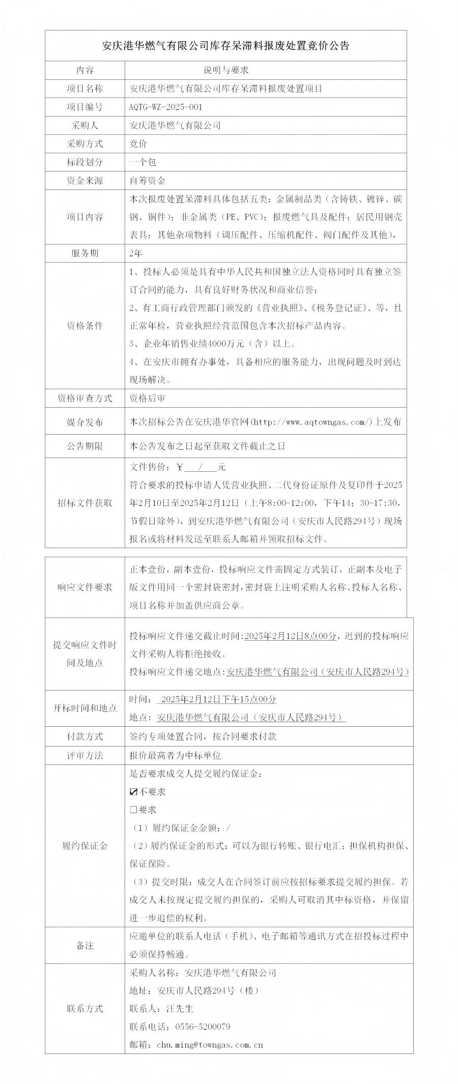 安慶港華燃?xì)庥邢薰編齑娲魷蠄髲U處置競價公告 發(fā)布時間:2025-02-10    閱讀次數(shù):2444次