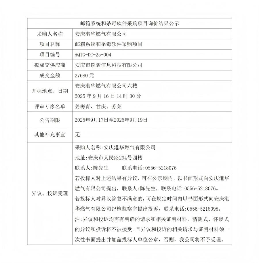 郵箱系統(tǒng)和殺毒軟件采購項(xiàng)目詢價(jià)結(jié)果公示