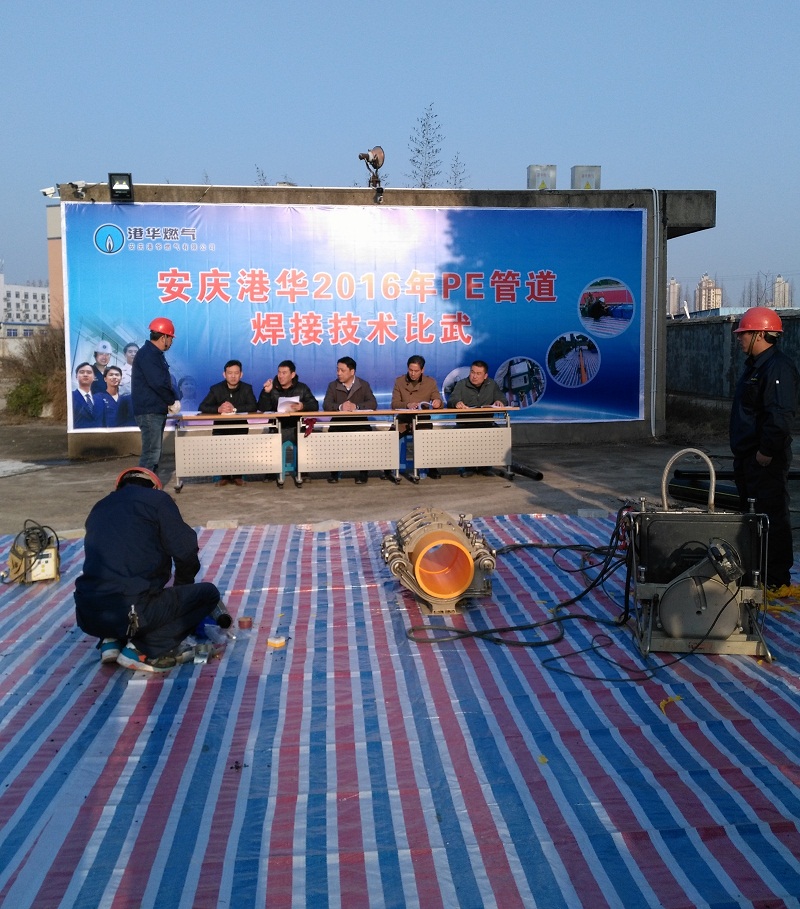 培訓(xùn)通過案例分析等方式詳細(xì)講解了焊接法律法規(guī)、PE管生產(chǎn)工藝、焊接技術(shù)及注意事項,并就焊接關(guān)鍵點進(jìn)行了集體探討。為保證比武活動順利有序開展,現(xiàn)場還成立了由公司總經(jīng)理王政文、運行副總楊善俊、工程副總裴曉斌及相關(guān)專家組成的評委組。評委組通過抽簽的方式隨機(jī)確定各參賽人員的具體參賽項目(熱熔和電熔兩種焊接方式),并從焊接質(zhì)量、作業(yè)時間等多個方面對所有選手進(jìn)行綜合評判、打分與裁定。