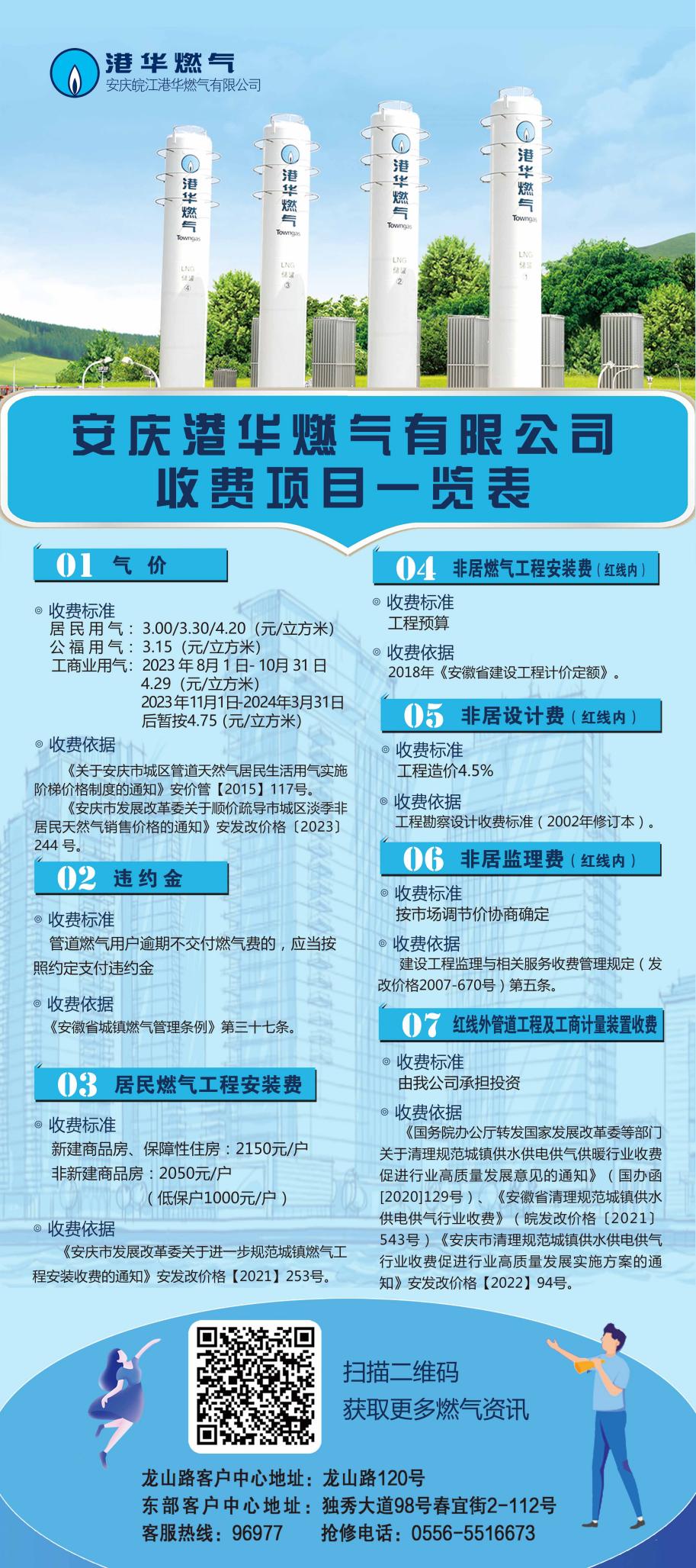 安慶港華燃?xì)庥邢薰臼召M(fèi)項目一覽表(2023.11.07)