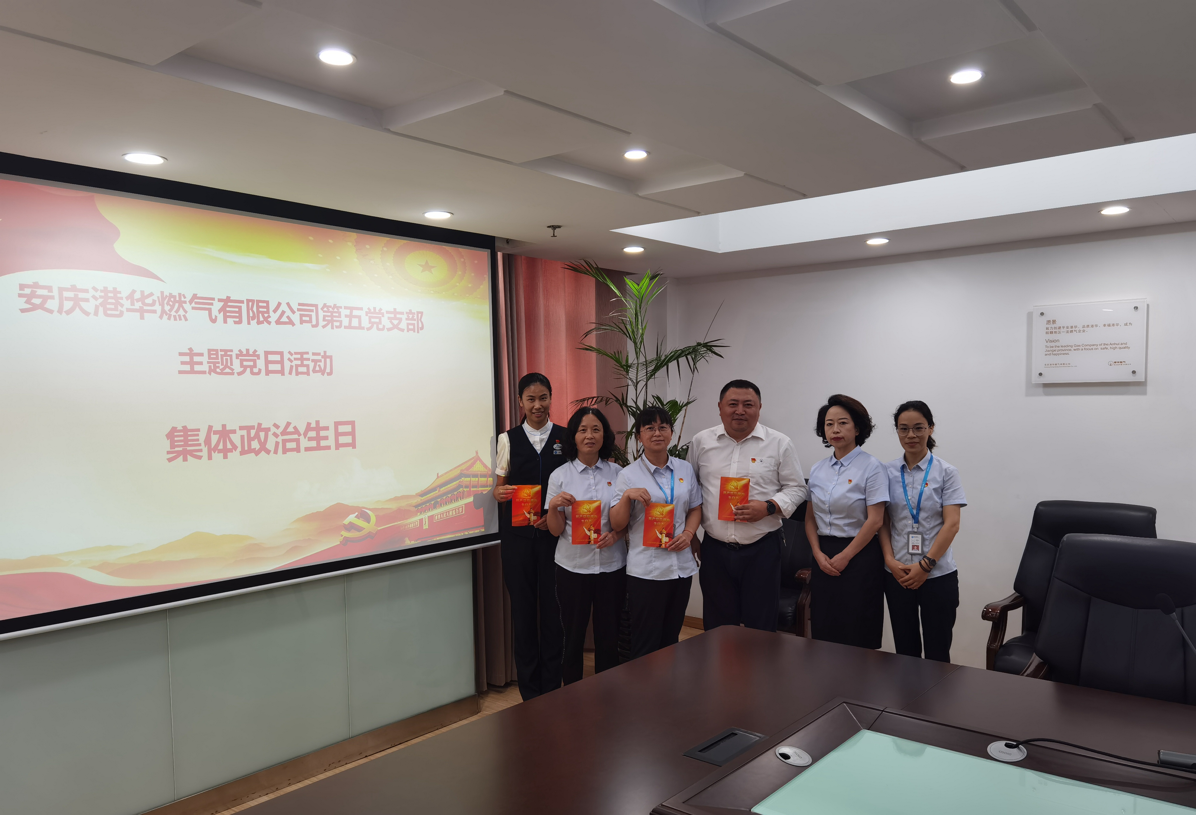 7月26日下午,公司第五黨支部召開支部大會,宣貫《安慶港華燃氣有限公司開展慶“七一”暨“對黨忠誠、始于足下”系列活動的通知》,并為多名黨員過集體“政治生日”。